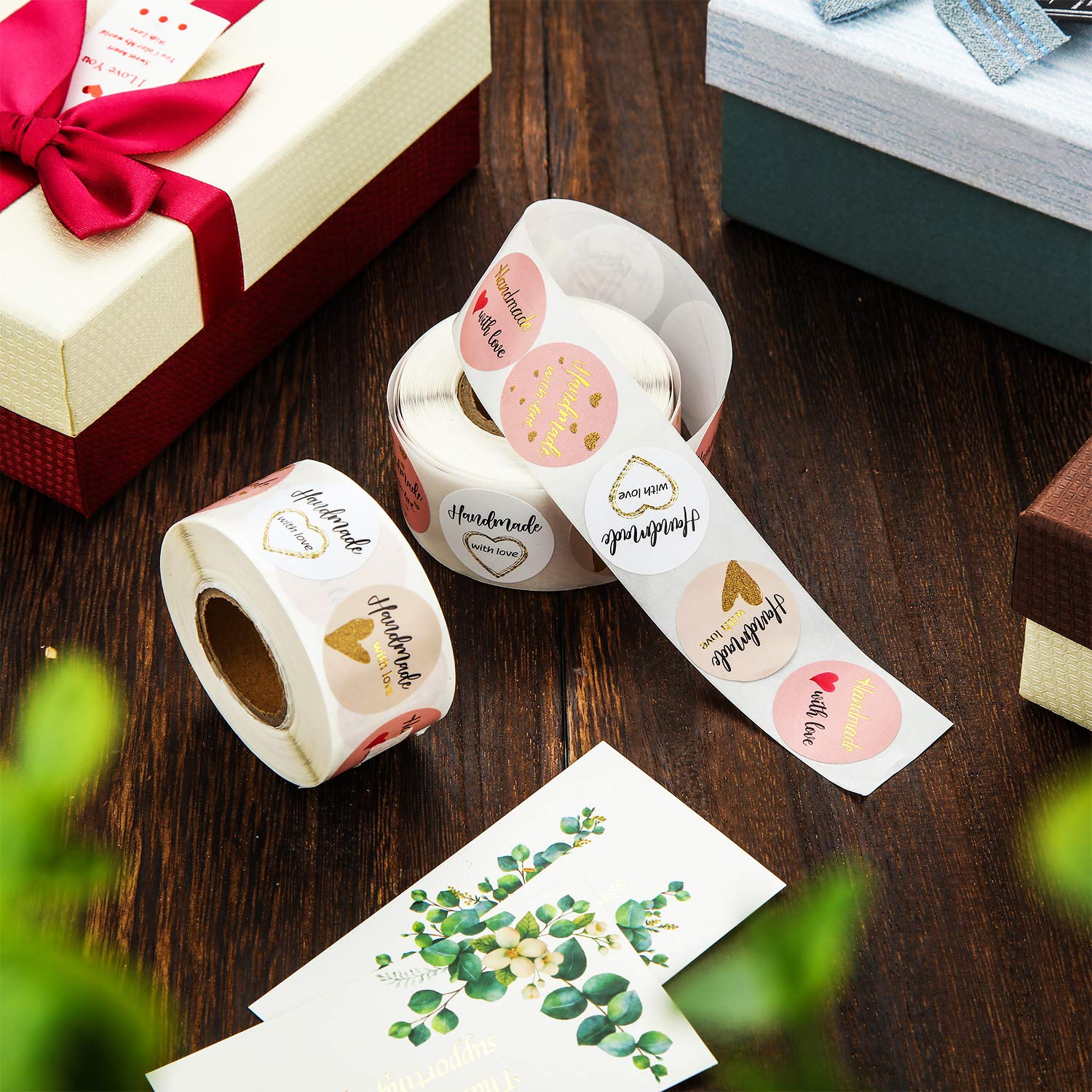 Handmade with Love Aufkleber (Rund - Ø 2,5cm) für Geschäft, Hochzeit, Geschenkpackung