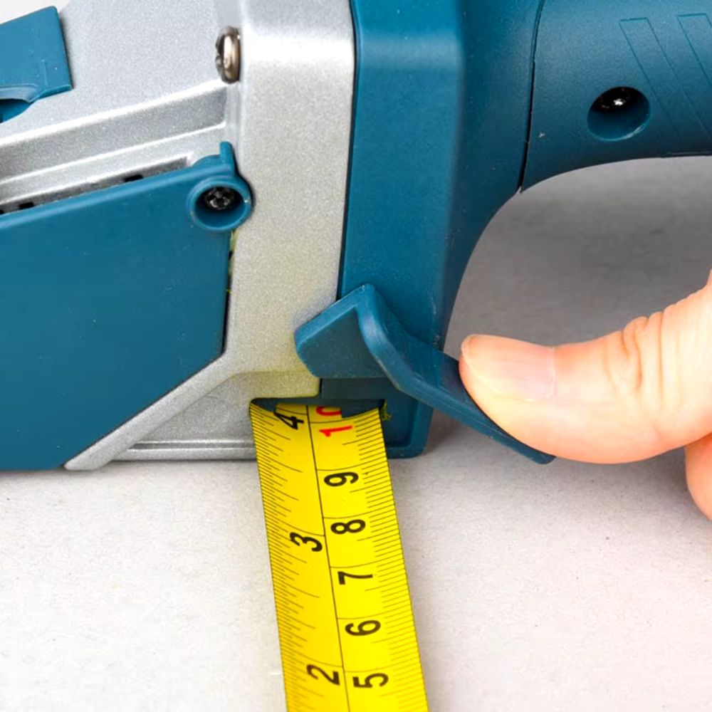 Dieses innovative Schneidewerkzeug bietet ein integriertes 5-Meter-Maßband, das präzise Messungen ermöglicht.