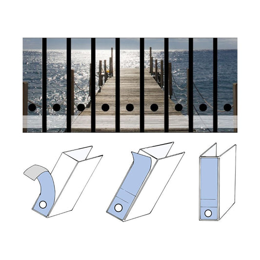 codiarts. Ordnerrücken Etiketten-Set für 9 breite Ordner | Selbstklebend - Sonniger Steg zum Wasser