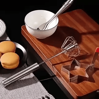 Halbautomatischer Edelstahl-Schneebesen | Drehbarer Push-Mixer für Kochen & Backen