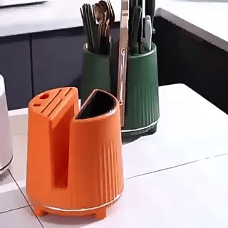 Drehbarer Messer- & Utensilienhalter mit Schneidebrettfach | Multifunktionaler Küchen-Organizer für Besteck