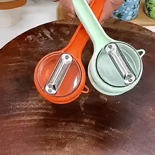 2er Set Doppelseitiger Multifunktionaler Obst- & Gemüseschäler mit Aufbewahrungsbox (Grün & Orange)