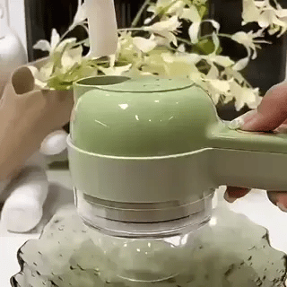 4-in-1 Wireless Elektrischer Gemüseschneider mit USB-Aufladung | Zerkleinern, Schneiden, Mixen und Schälen