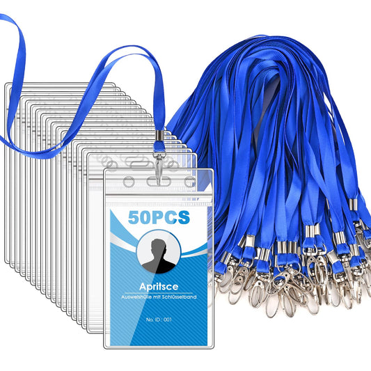 Apritsce ID Card Holder with Lanyard (50 Pack): Vertical Card Holder for Business in Blue