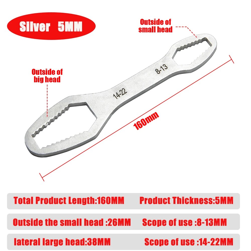 The product length varies between 145mm and 160mm, the thickness between 3.5mm and 5mm, and it can loosen screws ranging from 3mm to 22mm or 8mm to 17mm.