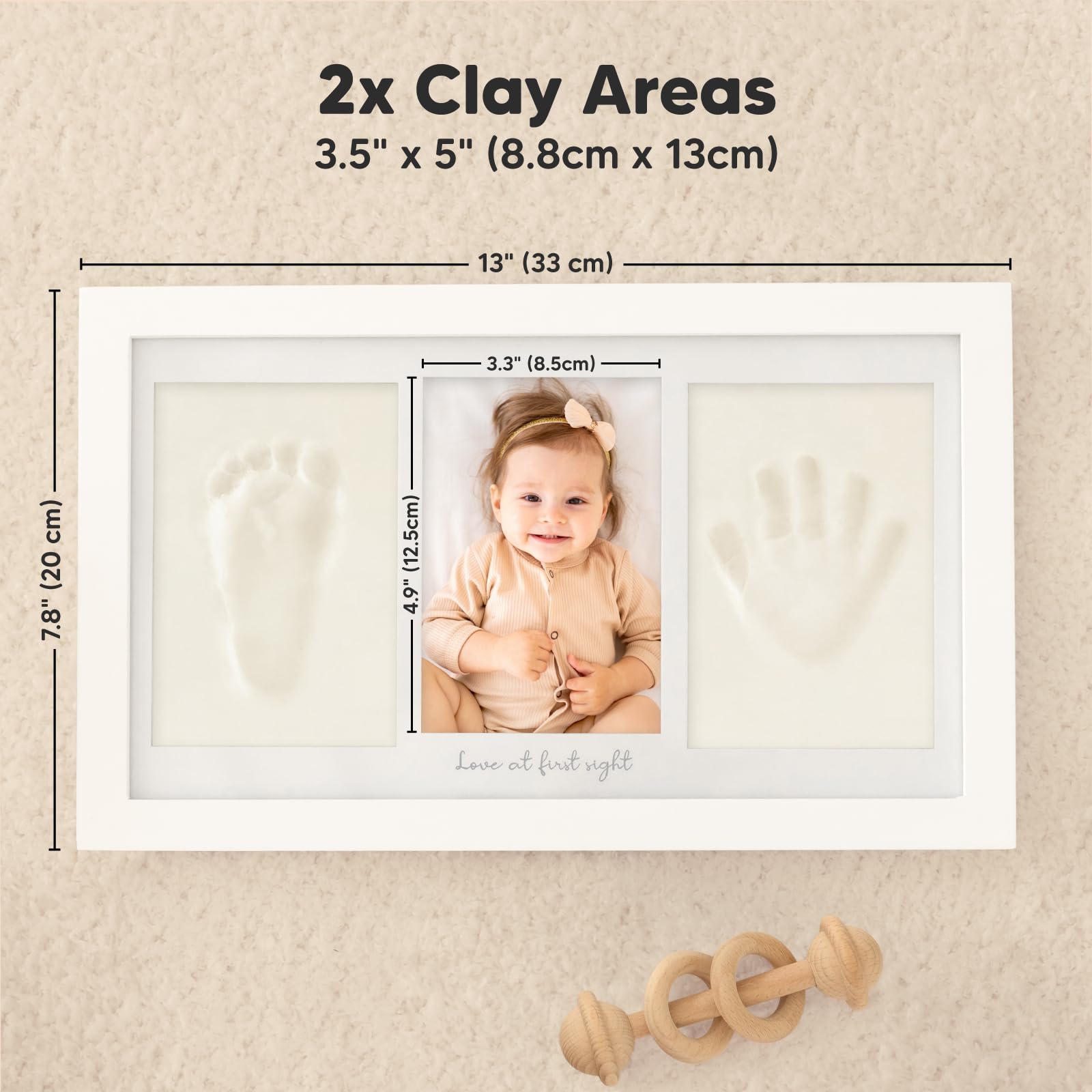 Made with food-safe, safe clay , this set is perfect for delicate baby hands and feet. The sturdy wooden frame with real glass ensures lasting quality in stylish Alpine White . Whether for a baby shower or as a birth gift, this set will capture those most beautiful first moments forever.