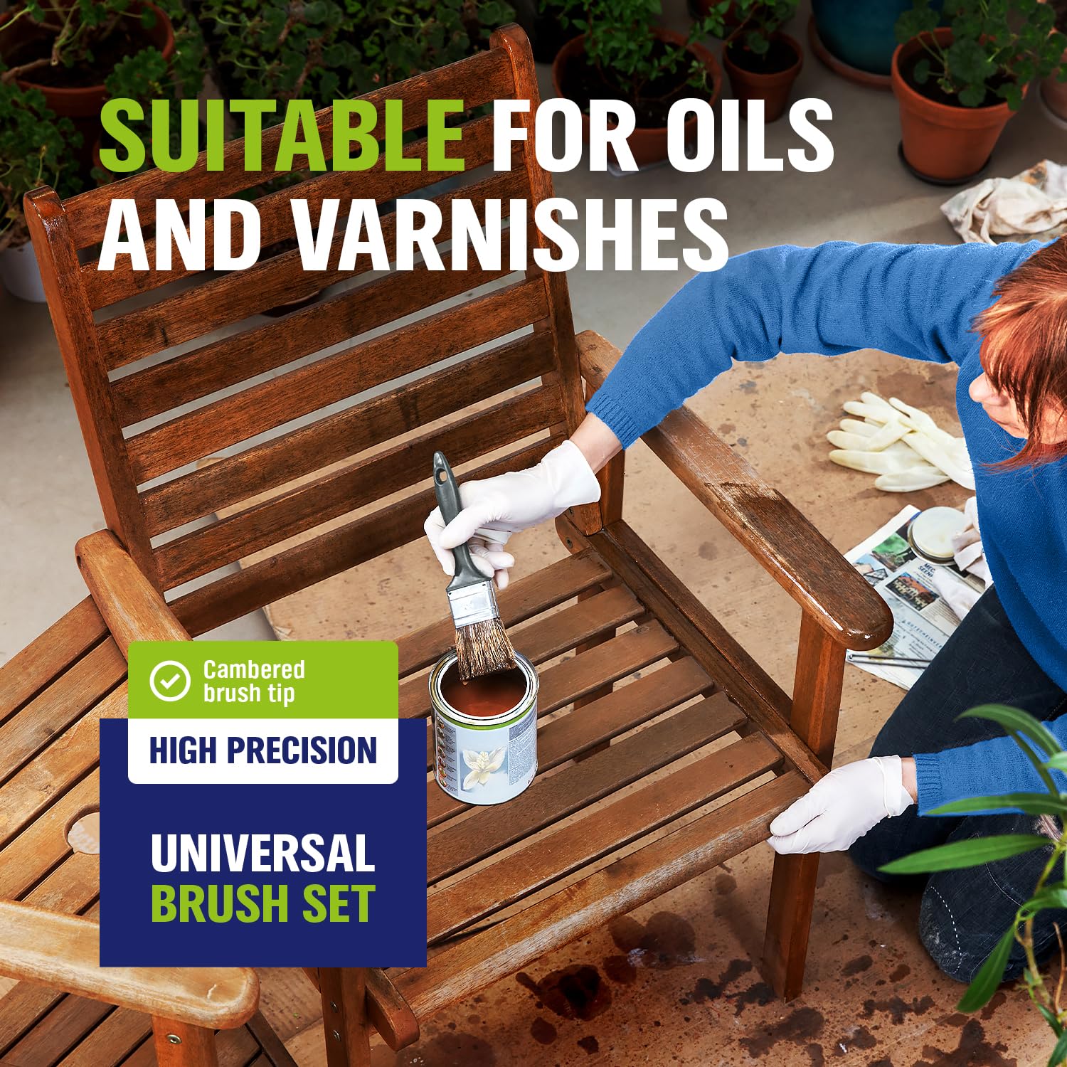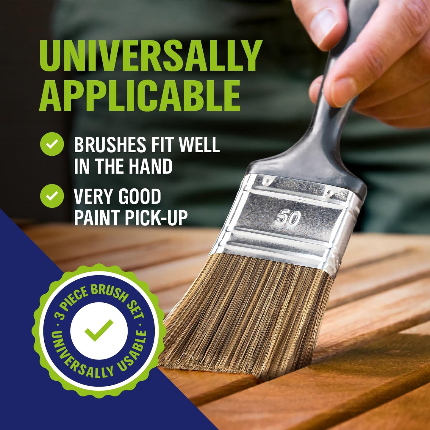 Contains two flat brushes (30 mm and 50 mm) and a flat brush (30 x 100 mm) - ideal for precise work on small areas and efficient painting of larger areas.