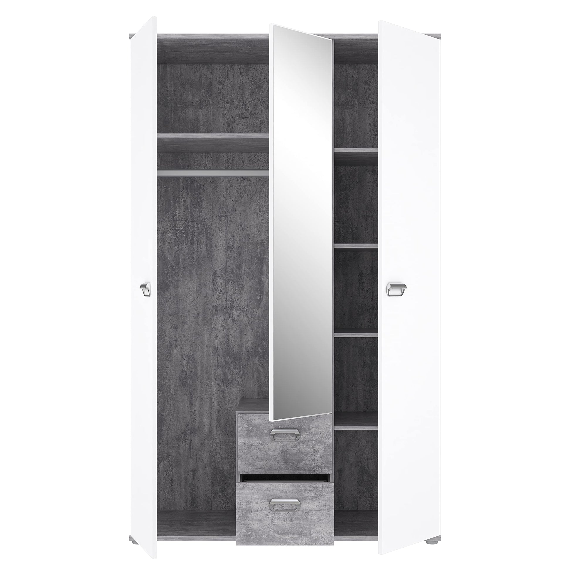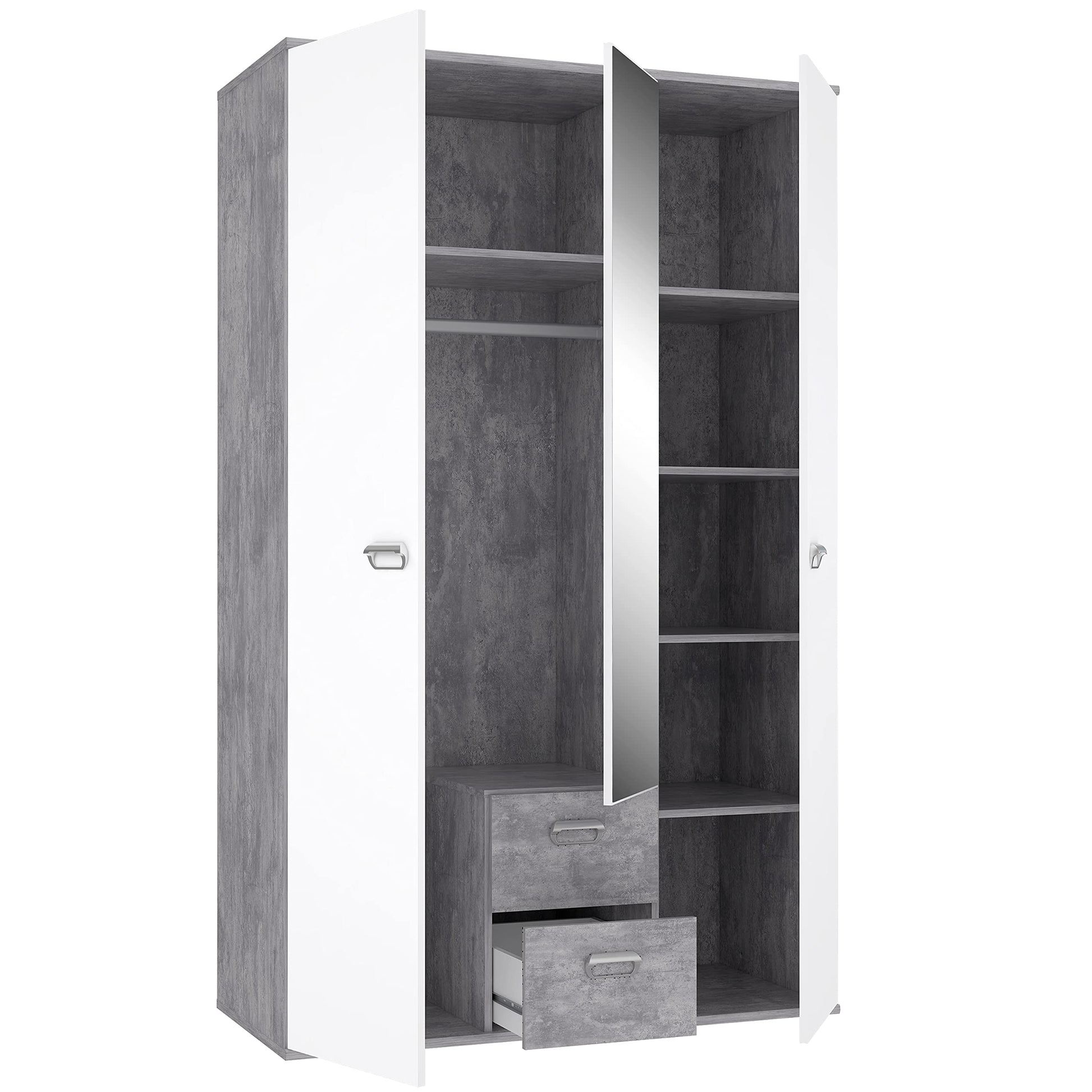 Wardrobe 'EMILY' with concrete look and mirror: light grey with white (Model: EMLS95-C251)