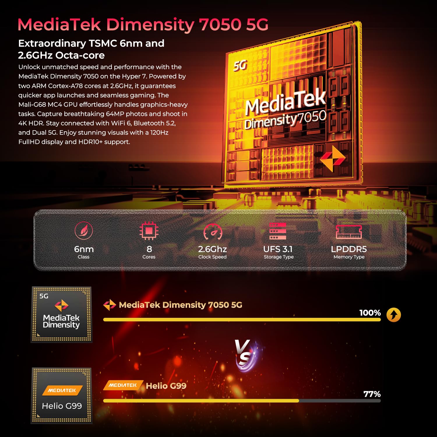 Extreme memory & performance : Dimensity 7050, 8-core processor, up to 20GB RAM & 256GB ROM - lightning fast and powerful