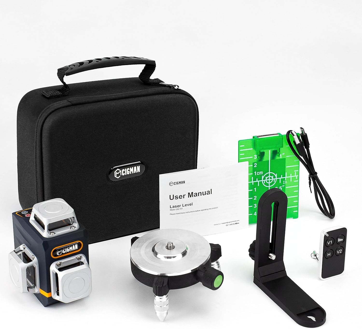 Cross line laser, CIGMAN (3x360 degrees) Green: Self-leveling laser spirit level, construction laser