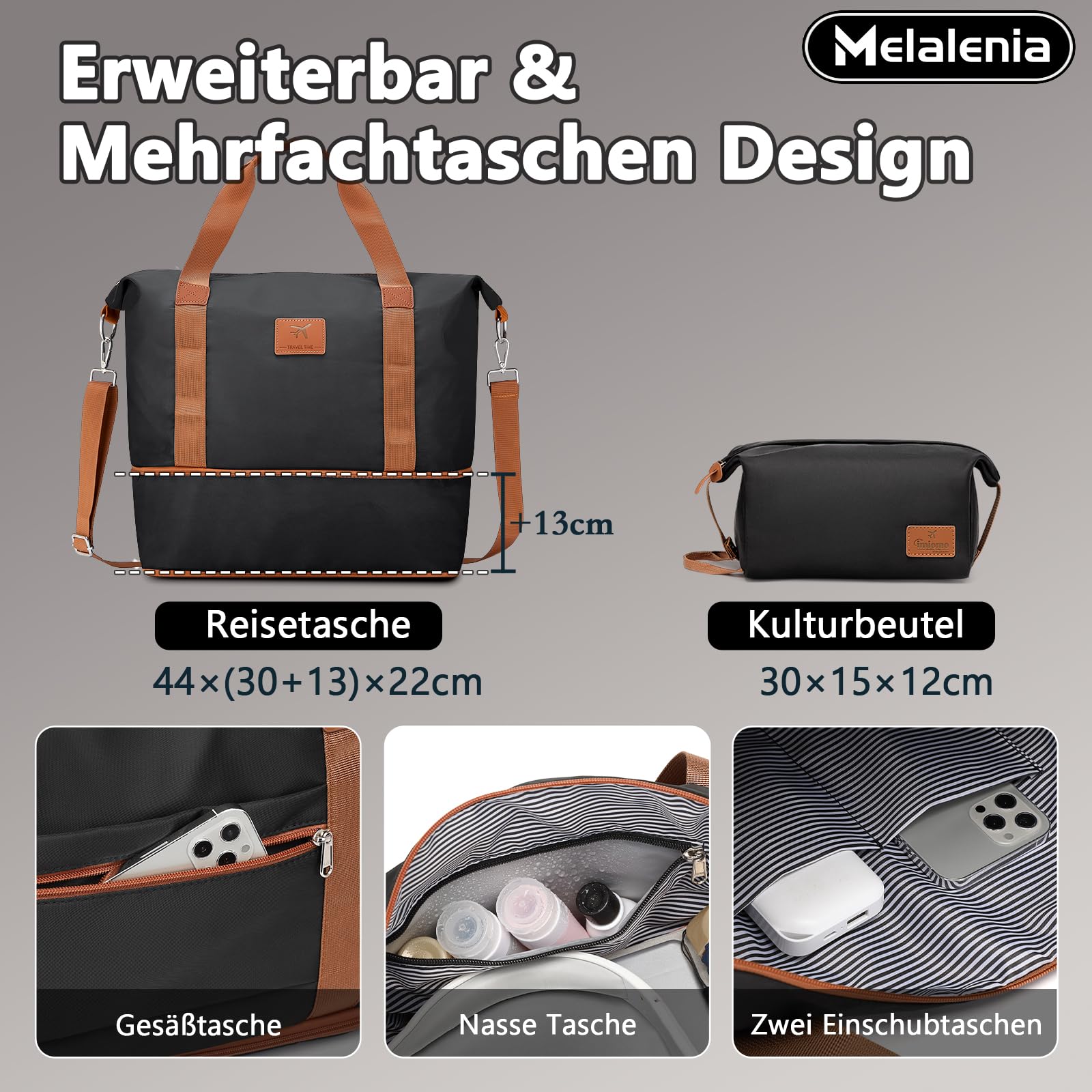MELALENIA hard-shell travel suitcase set (7 pieces): Super-light, TSA lock | Black