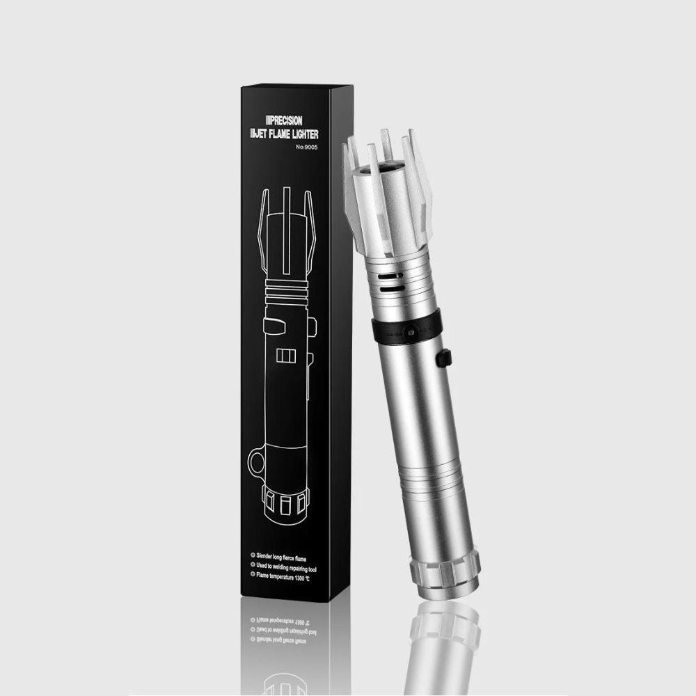 This powerful and stylish lighter resembles a real Lightsaber and produces strong, wind-resistant jet flames that ignite fires in no time - whether camping, grilling, or for campfires.