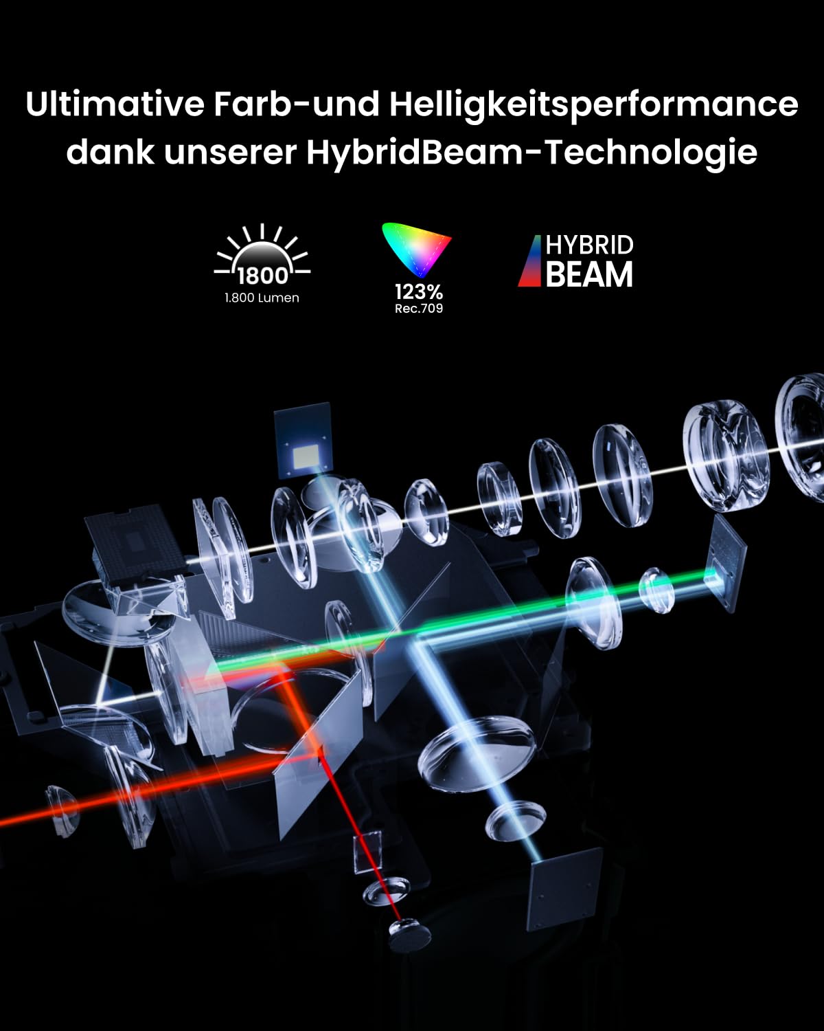 - HybridBeam technology - 1,800 ANSI lumens through laser and LED combination