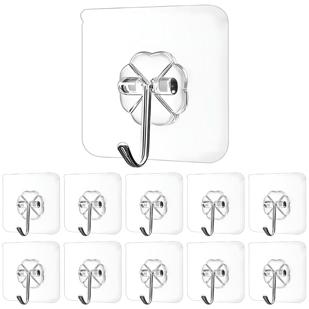 Pack of 10 Multifunctional Transparent Self-Adhesive Wall Hooks, Multi-Purpose Hooks for Kitchen, Bathroom and Household | Waterproof, Durable, Punch-Free