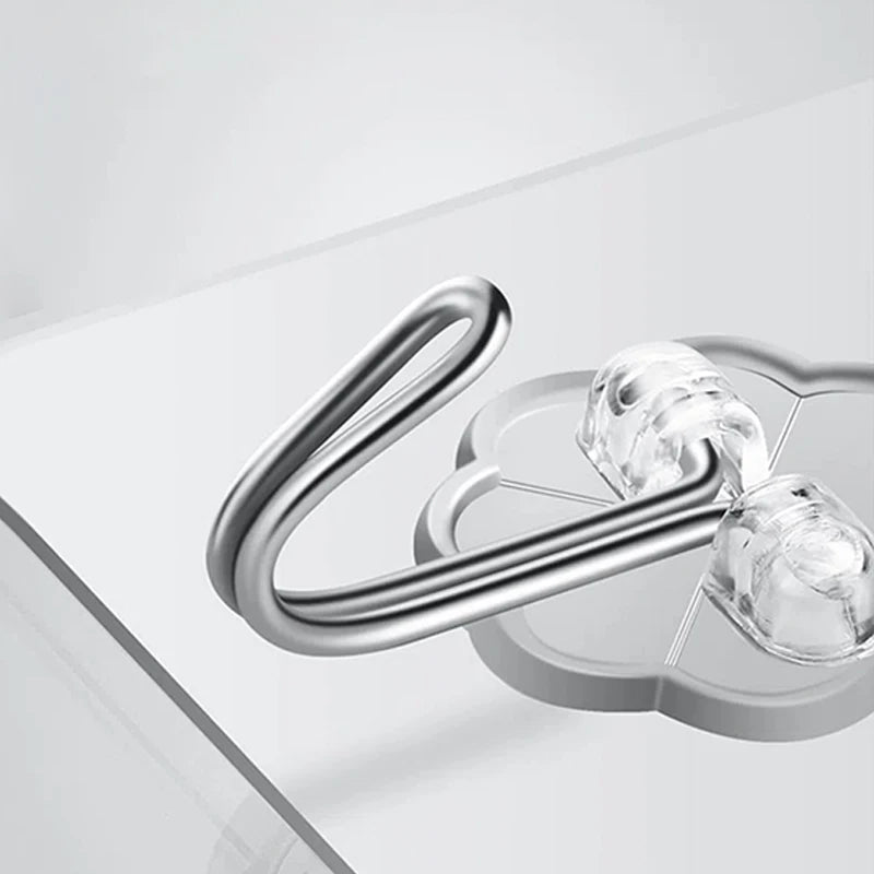 Self-adhesive hooks with strong adhesion that can hold up to 10kg on smooth surfaces - no nails or drill holes required.