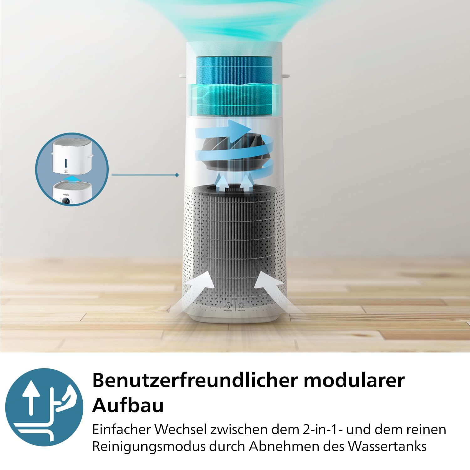 Philips 3000 Series 2-in-1 air purifier and humidifier: NanoProtect HEPA and activated carbon filters