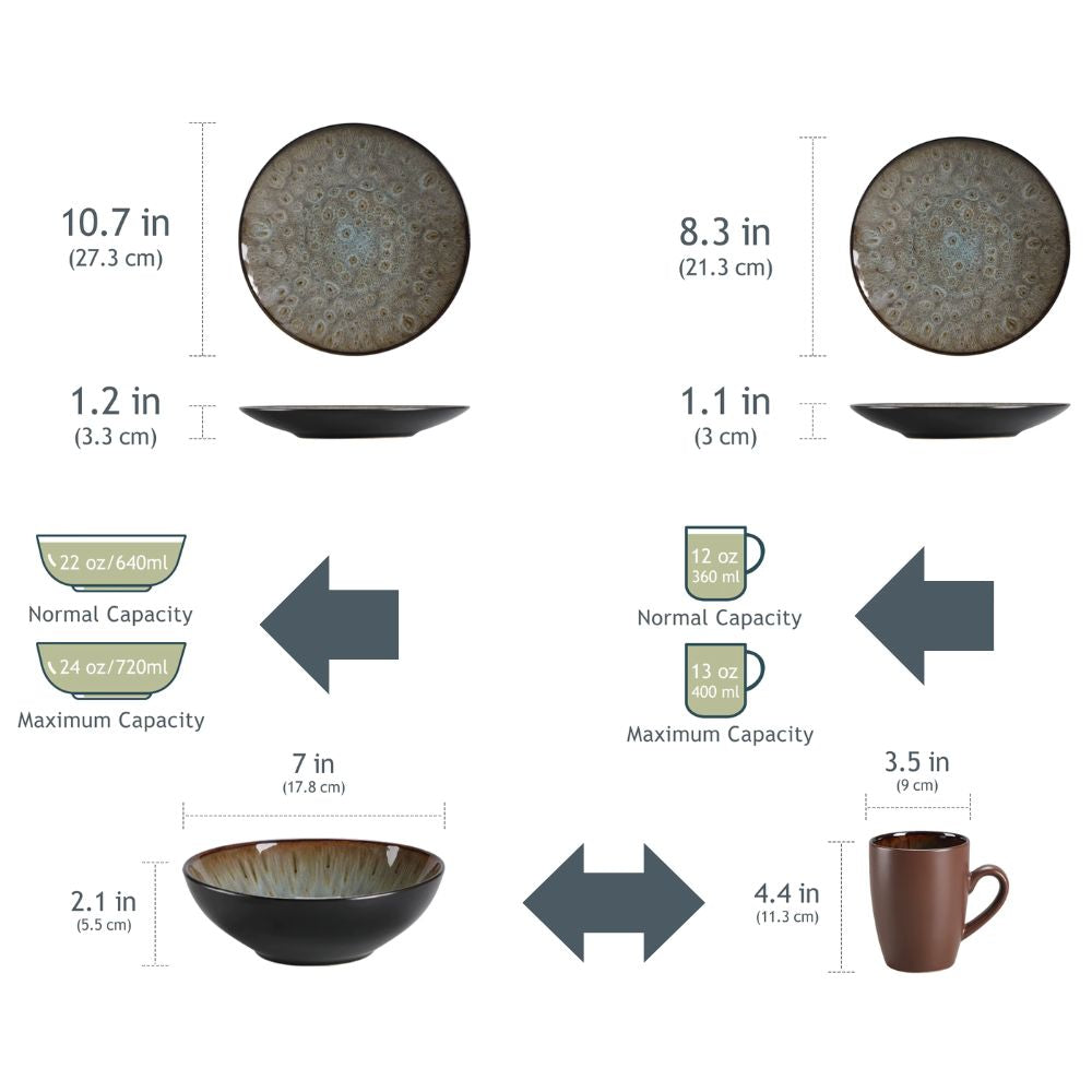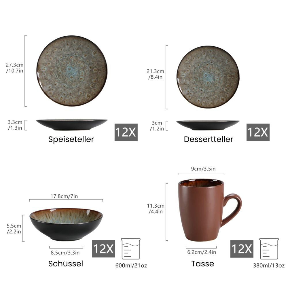 VANCASSO BUBBLE 48-piece Vintage Ceramic Dinnerware Set | Plates, Bowls & Cups in Brown