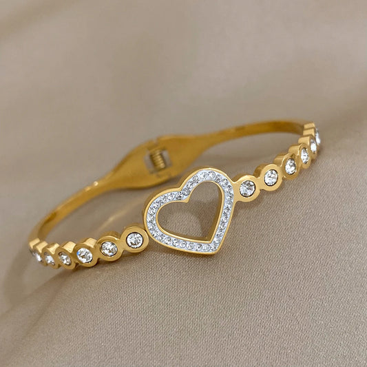 Love Bracelet | Edelstahl Goldplattiert, Herz-Charm Armband mit Glitzersteinen