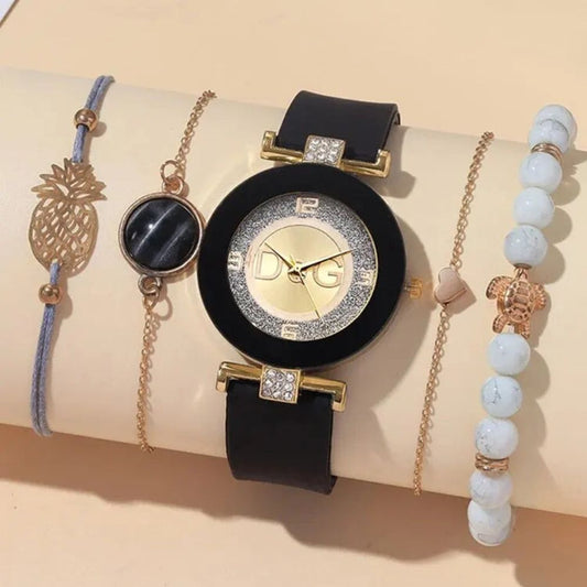 5-teiliges Damen-Quarzarmbanduhr mit Armband-Set | Bracelet Design Premium