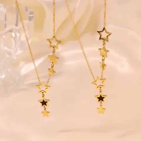 Trendy Damen Stern Anhänger Halskette | Titanium-Edelstahl vergoldet, schwarzes Acryl