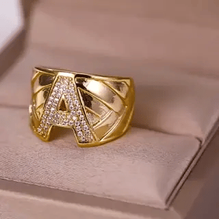 Verstellbare Buchstabenringe (A-Z) mit Zirkonia | Edelstahl, Schmuck Geschenk