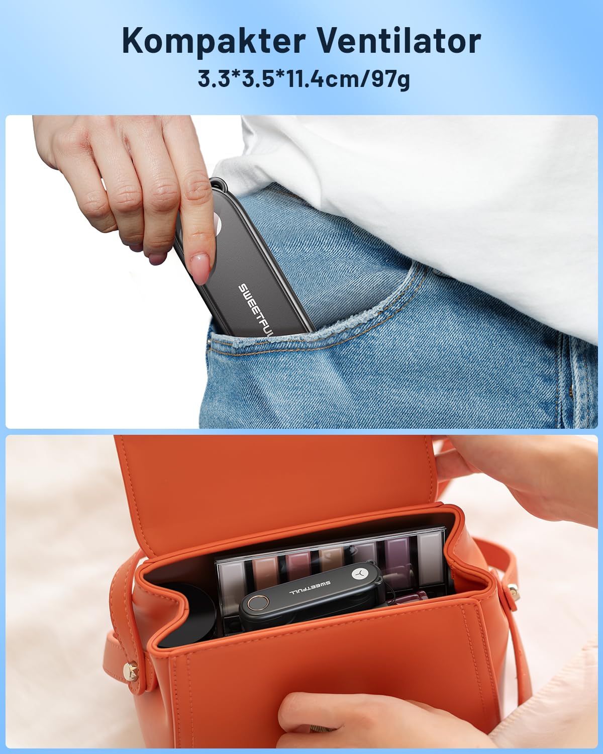 - Stilvolles Design - auch als Wimpernventilator beim Make-up geeignet