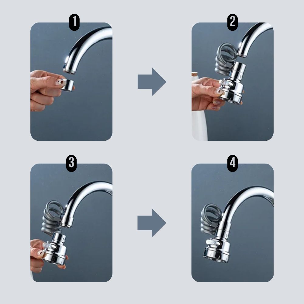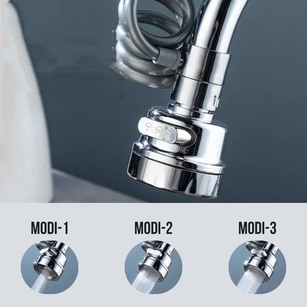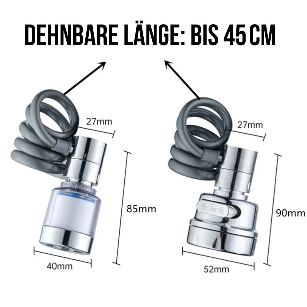 Der praktische Wasserhahn-Aufsatz überzeugt durch seine 360° Drehfunktion, einfache Montage und sein wassersparendes Design - perfekt für jede moderne Küche.