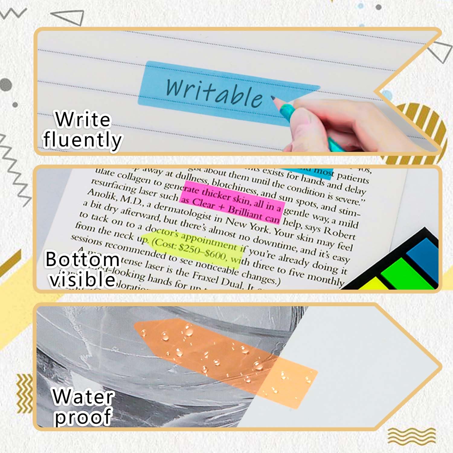 Effizient, farbenfroh, vielseitig: Mit 1200 Haftstreifen in 8 auffälligen Farben behalten Sie stets den Überblick - perfekt zum Markieren, Strukturieren und Hervorheben. Enthält 3 Designs (Rechtecke, Pfeile, Flaggen) aus wiederverwendbarem, wasserfestem PET-Material.