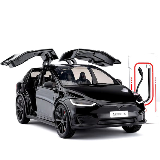 Voiture Miniature Tesla Model X/3 (1:24) avec Lumières et Sons | Inclut une Station de Recharge : Cadeau de Collection