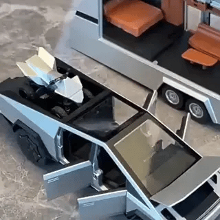 Modèle réduit de voiture TESLA Cybertruck (1:32) avec remorque et moto de plage | en métal moulé sous pression avec lumière et son