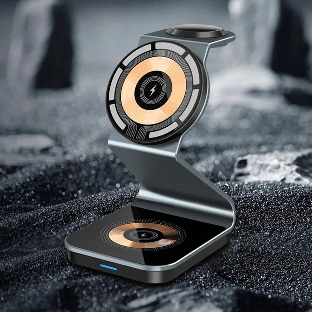 Dites adieu aux câbles emmêlés et bonjour à l'avenir de la recharge avec ce chargeur sans fil 3-en-1 en aluminium amélioré.