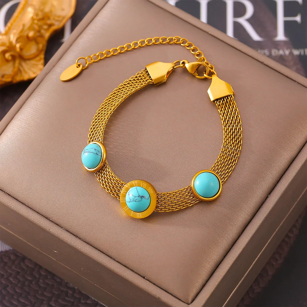 Bracelet en acier inoxydable et titane plaqué or avec pendentif turquoise | Bijoux de luxe pour femmes