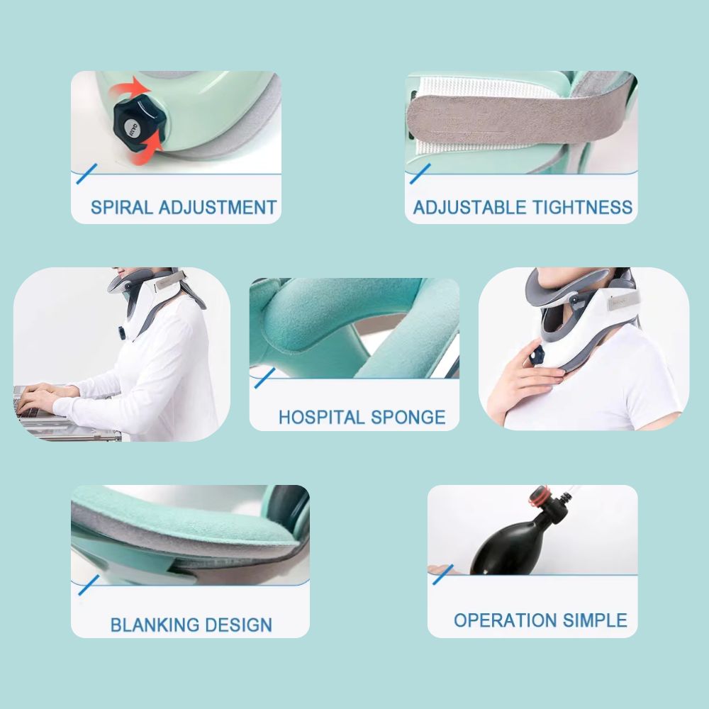 Civière de cou à coussin d'air, dispositif de traction du cou | Réglable, alignement de la colonne vertébrale, soulagement de la douleur