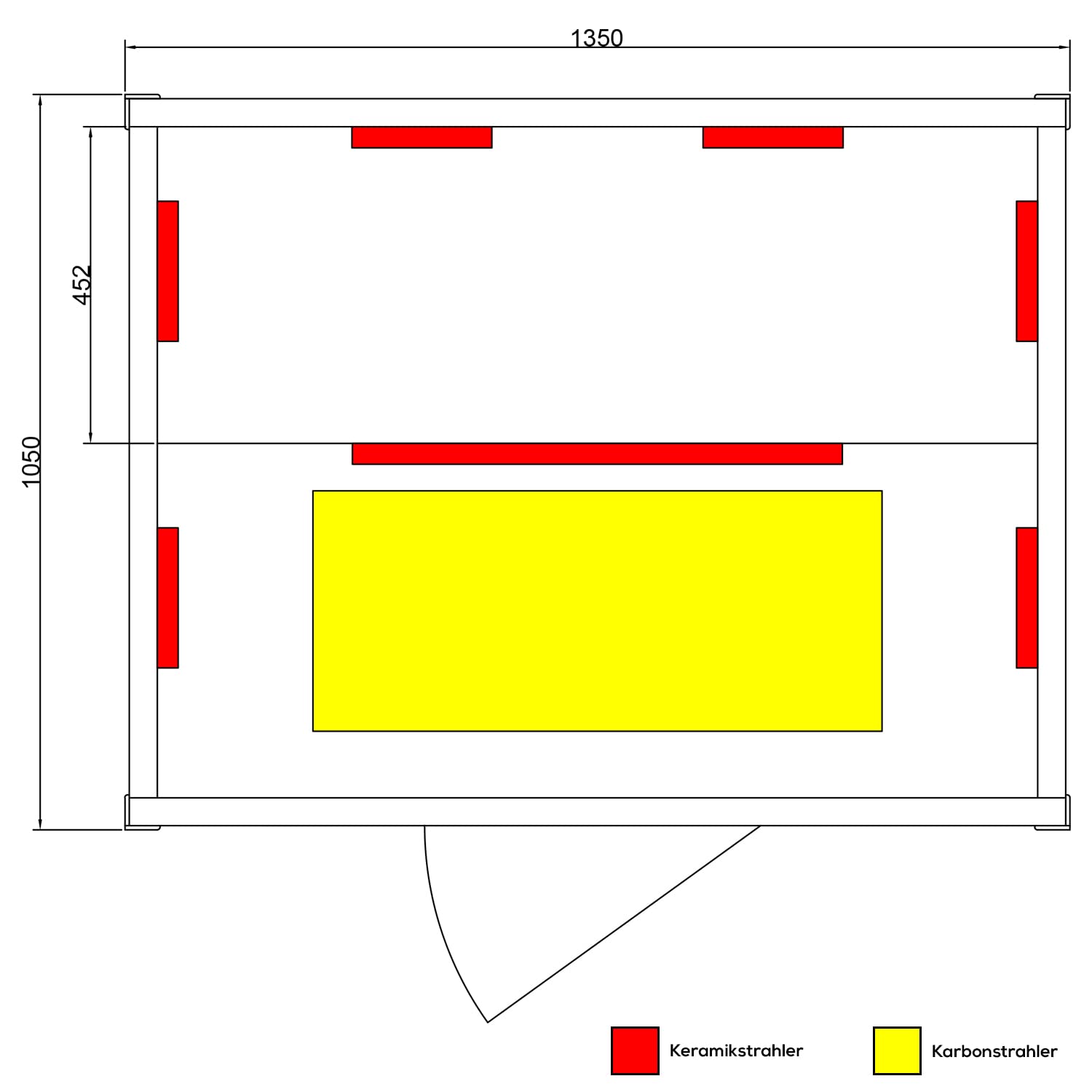 7 Keramikstrahler + 1 Boden-Karbonstrahler für gleichmäßige Ganzkörperwärme. -