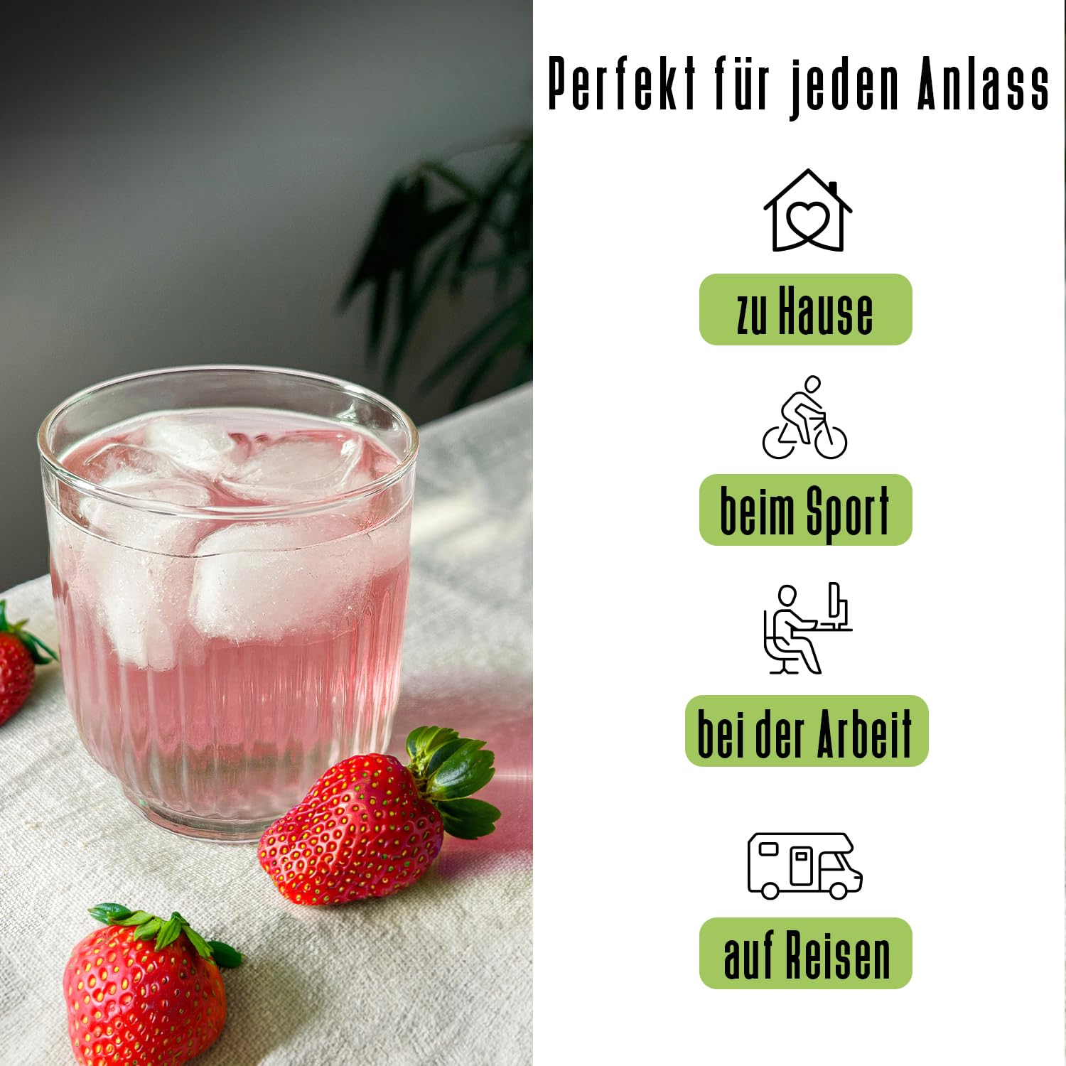 Ideal für: Büro, Schule, Sport, Reisen - überall, wo du fruchtige Erfrischung brauchst.