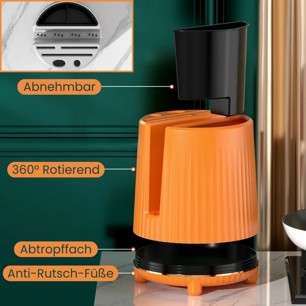 La conception innovante rotative à 360 degrés vous permet d'accéder à vos ustensiles de cuisine rapidement et facilement. Fini les tiroirs déroutants : tout est à portée de main !