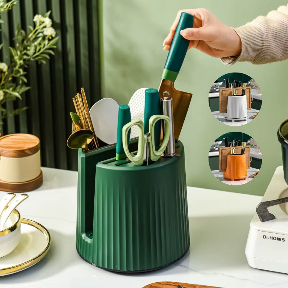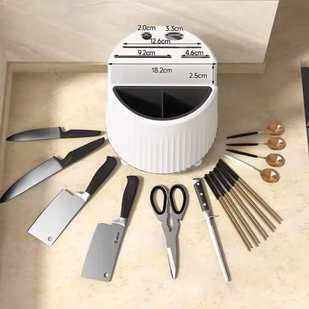 Porte-couteau et ustensiles rotatif avec compartiment pour planche à découper | Organisateur de cuisine multifonctionnel pour couverts (GIF2)