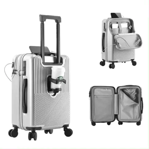 Multifunktional Trolley Koffer mit Frontöffnung | USB-Anschluss, Becherhalter, Handgepäck & Reisekoffer