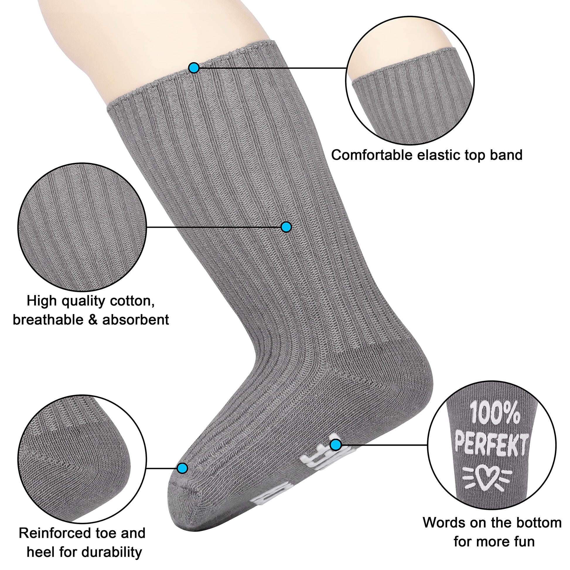 - Hochwertige Materialien: Diese Baby Socken bieten eine weiche, atmungsaktive Passform, die sich hervorragend für die zarte Haut Ihres Babys eignet