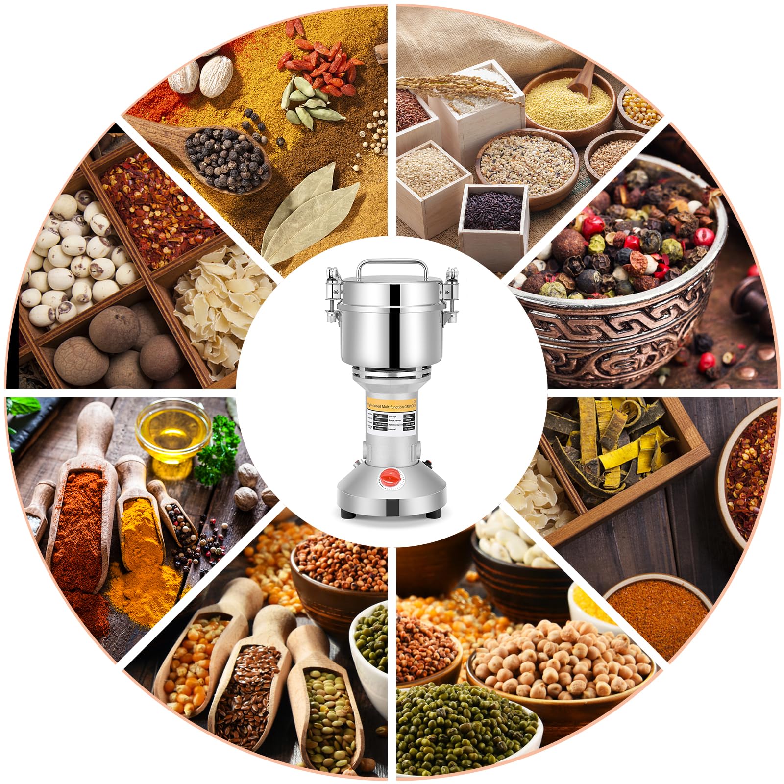Elektrische Getreidemühle (500g) aus Edelstahl: High Speed mit 28000rpm Starker Motor