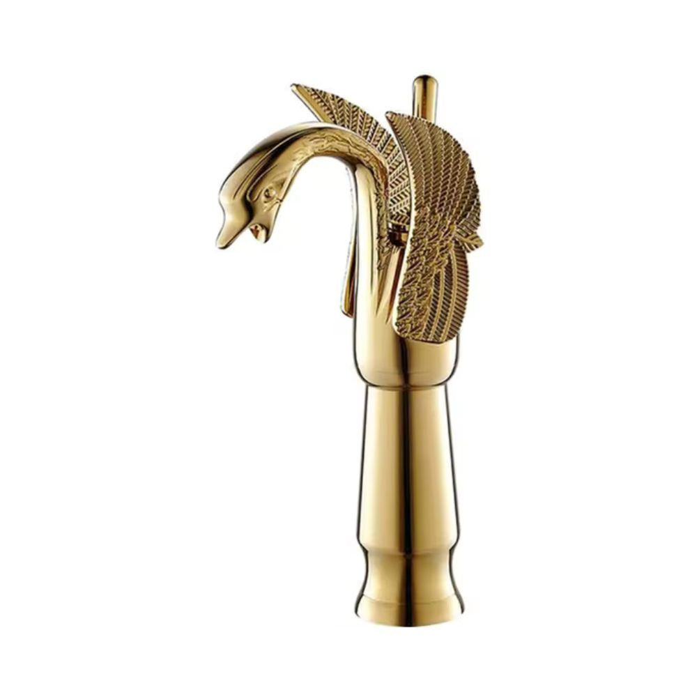 Goldene Waschbeckenarmatur im Schwanen-Design mit Einhebelmischer (GIF2)