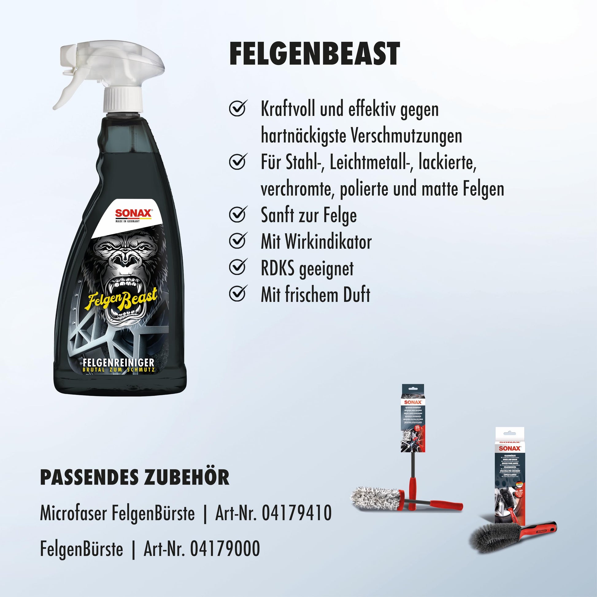 Materialschonend: PH-hautneutral, greift weder Felgenoberfläche noch Radbolzen an. Ideal für Felgen mit RDKS.