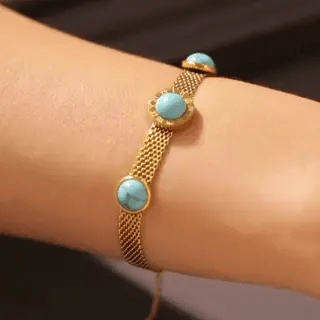 Goldplattiertes Titanium-Edelstahl Armband mit Türkis-Anhänger | Luxus-Damenschmuck