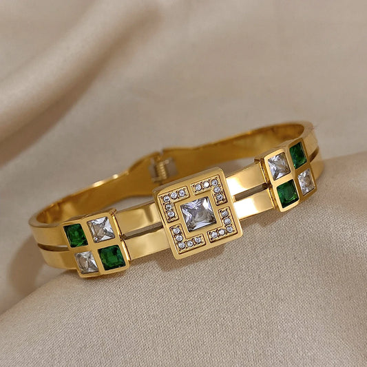 Luxuriöses Wasserfestes Smaragdgrünes Edelstahlarmband mit Zirkonia | Italienisches Charm-Armband