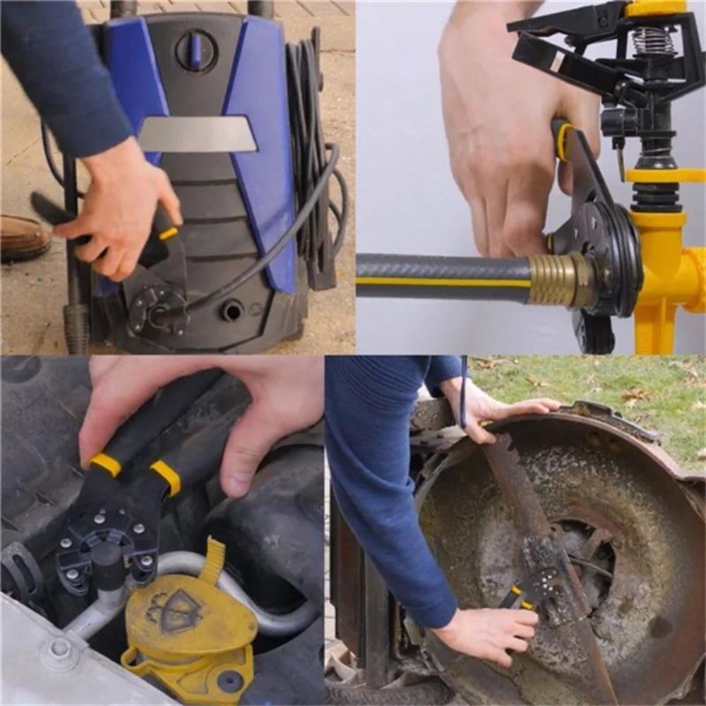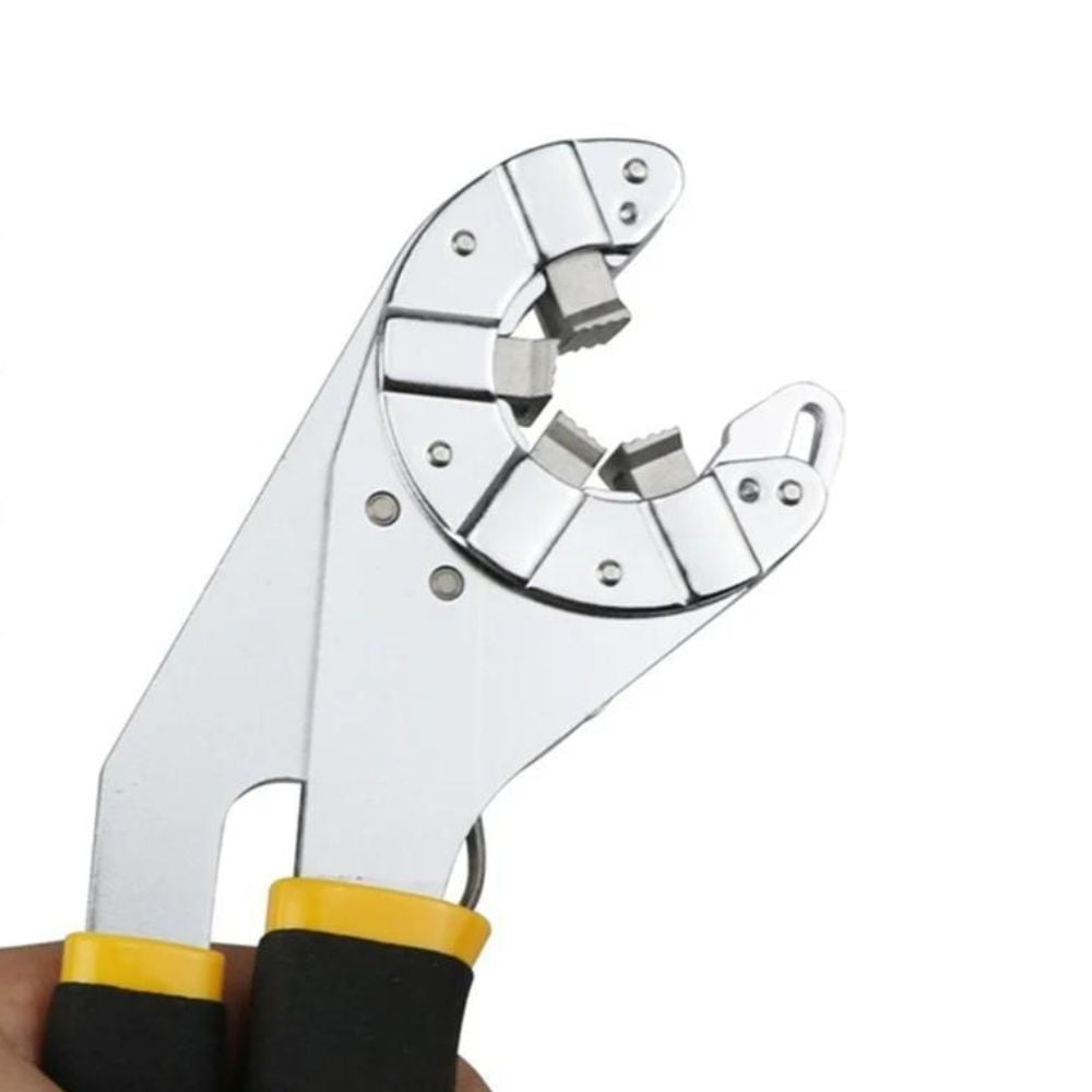 - Verstellbarer Sechskantschlüssel passt sich verschiedenen Schraubengrößen an.