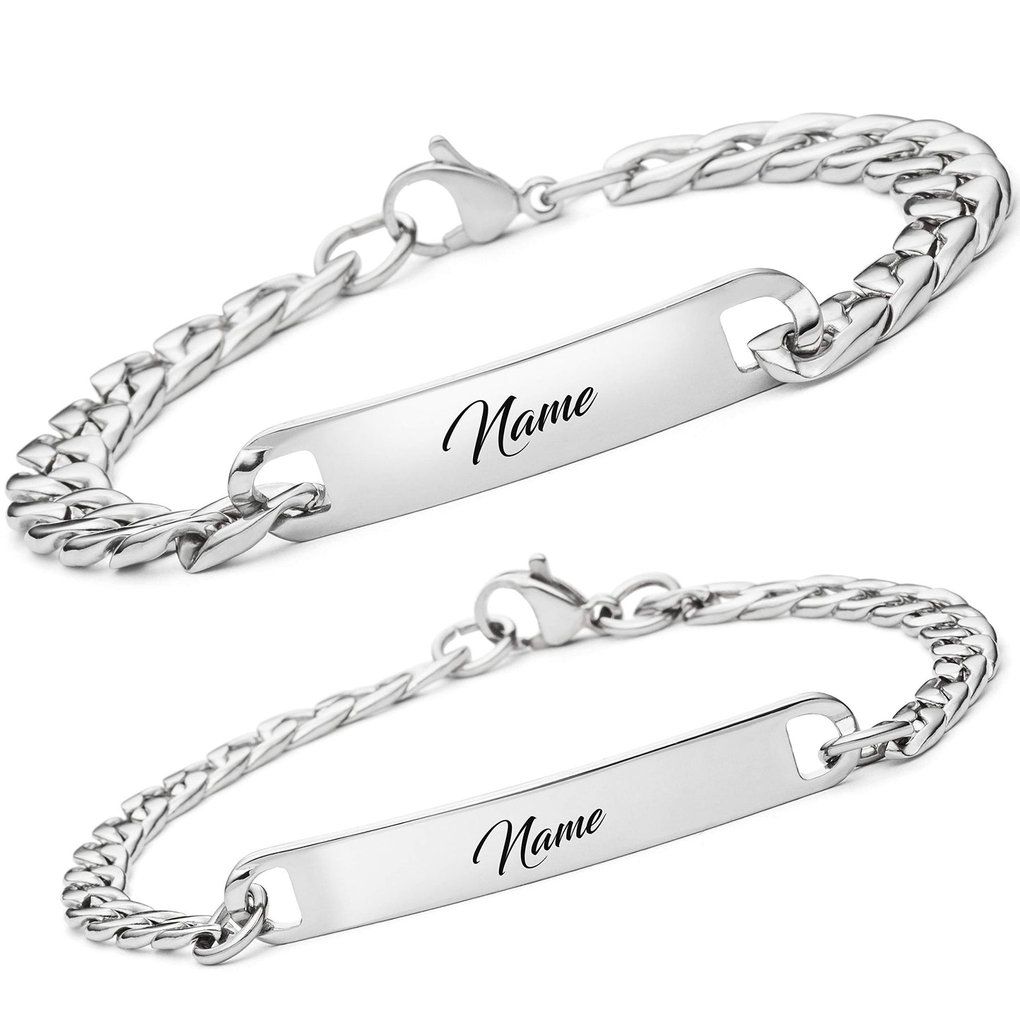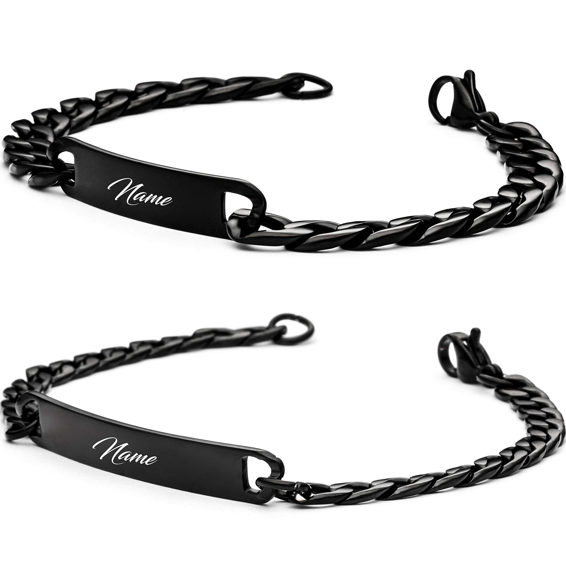 Personalisiertes Edelstahl-Armband für Herren mit Wunschgravur (2 Stück): Silber, Schwarz