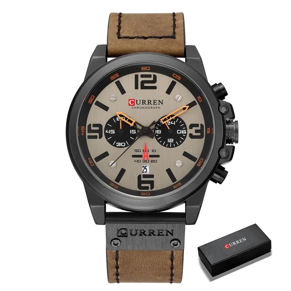 CURREN Luxus Chronograph Quarz-Uhr für Herren mit Lederarmband