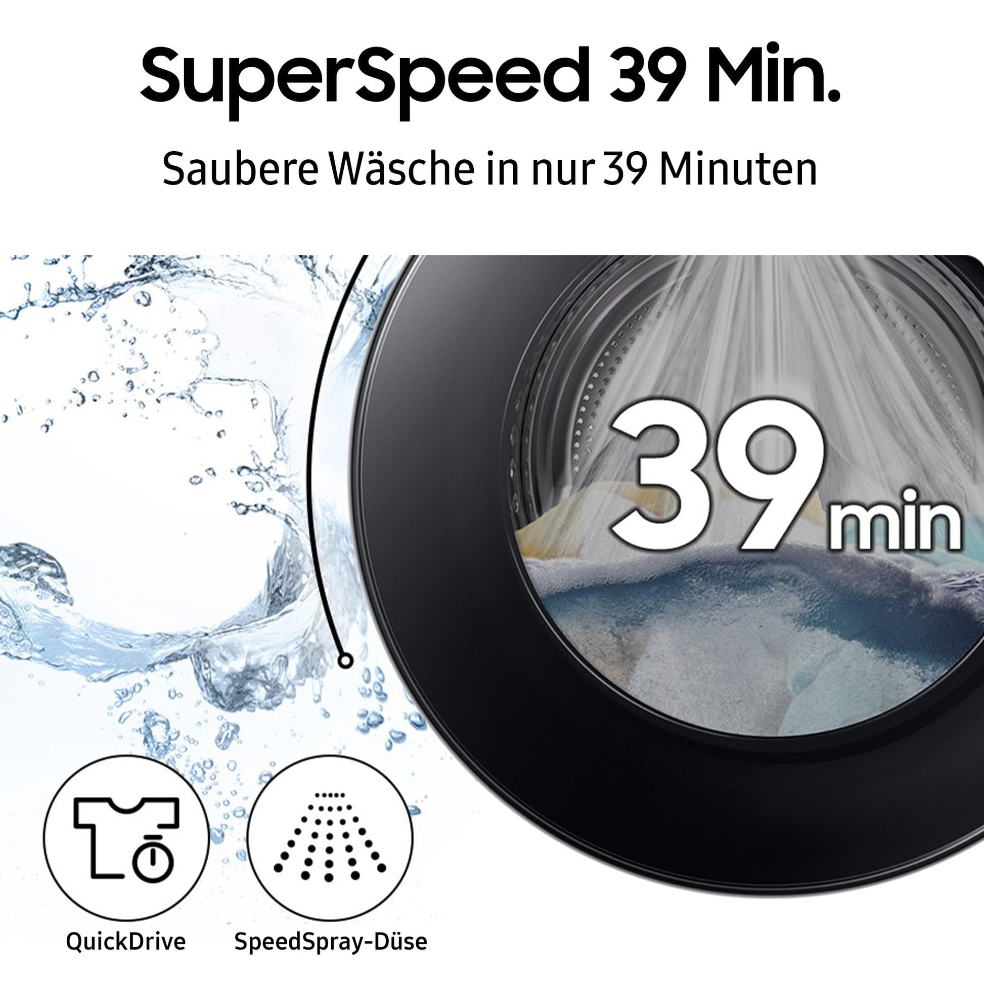 SuperSpeed 39 Min. - saubere Wäsche in nur 39 Minuten (bis 5kg) durch optimierte Wasser- & Spülsteuerung