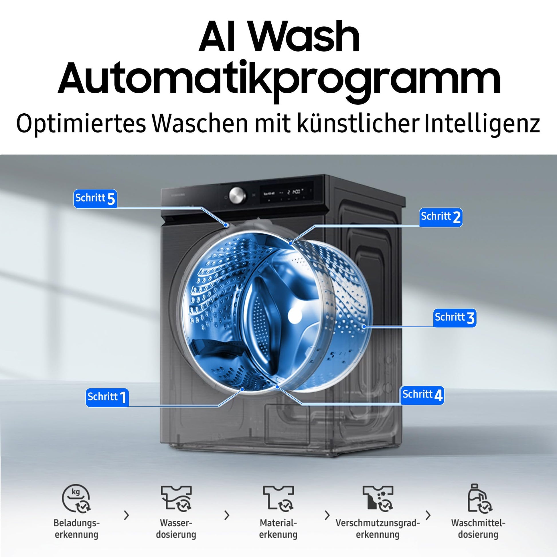 AI Wash Automatikprogramm - erkennt Beladung & Verschmutzungsgrad, dosiert Waschmittel selbstständig