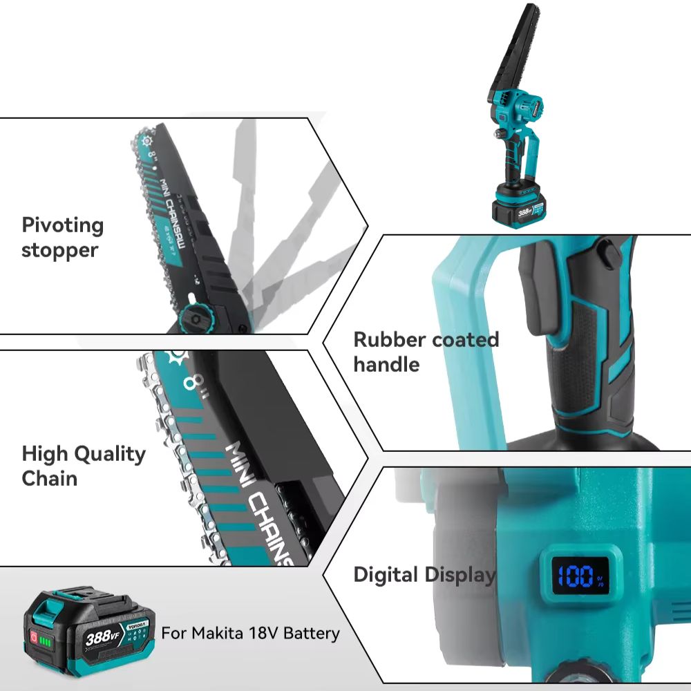 Erleben Sie kraftvolle und effiziente Schnitte mit der YOFIDRA 8" Akku-Kettensäge!